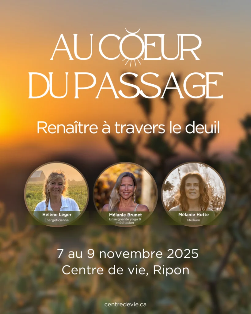 Joins-toi à nous pour une retraite douce et transformatrice, guidée par Mélanie Brunet, Mélanie Hotte et Hélène Léger, et ouvre un chemin vers la paix intérieure. Renaître à travers le deuil, c’est une invitation à déposer ton coeur dans un espace sécurisant, profondément humain pour :